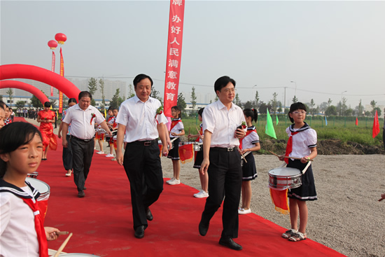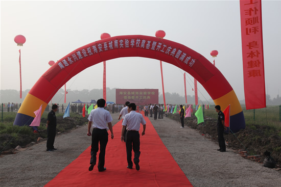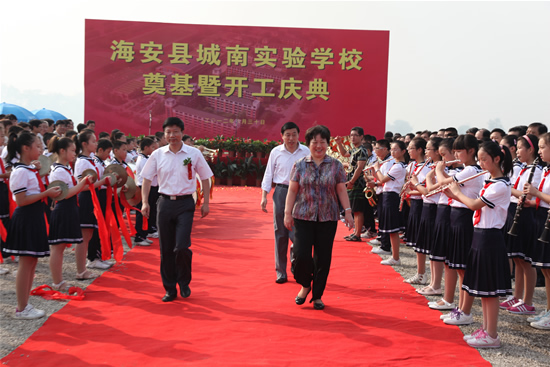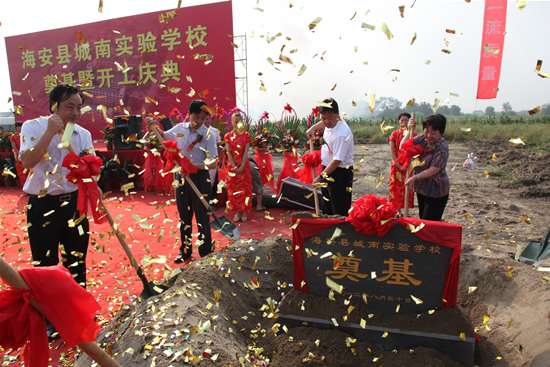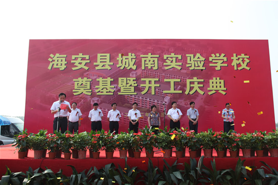 8月30日上午8时18分,海安县城南实验学校建设工地,彩旗招展,锣鼓喧天,随着南通市政协副主席、海安县委书记、县人大常委会主任单晓鸣一声令下,城南实验学校正式开工建设。