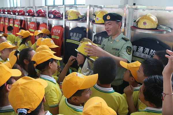 6月1日,城南实验小学三(8)班全体师生来到海安消防中心,参加“童眼看消防”活动,与消防官兵度过了一个特殊而又难忘的“儿童节”。