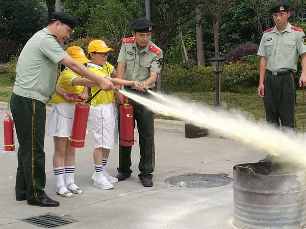 孩子们先后观看了油桶灭火展示、高压水枪灭火演习,听消防叔叔讲解消防车的结构、消防服的使用方法,参与了干粉灭火器灭火,穿消防装备,体验到了火灾的危害,知晓了初起火灾的扑灭方法,感受到了消防叔叔的勇敢。消防叔叔还带着师生登上云梯,升空20多米,体验了一把“高空作业”的独特感觉。