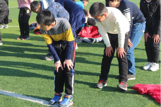 友谊第一,比赛第二。瞧,赛前,运动健儿们个个全神贯注,身手灵活,随着于老师的口令,正一丝不苟地做着准备活动呢!